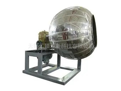 為使芯片盡快在其表面均勻涂上包衣結(jié)晶,并達(dá)到拋光目的,須先對鍋內(nèi)芯片分次噴糖漿,再通過鍋體順時針旋轉(zhuǎn),使糖衣片在鍋內(nèi)翻滾、磨擦、研磨,使糖衣均勻。同時向鍋內(nèi)通入熱風(fēng),迅速除去藥片糖衣表層水份,獲得包裹均勻、光滑的糖衣片。本機(jī)是糖衣工藝的常用設(shè)備,以穩(wěn)定的鍋體線速度旋轉(zhuǎn),使藥片在鍋內(nèi)形成拋物曲線,達(dá)到糖衣層厚薄均勻,色澤光亮,不發(fā)生麻點(diǎn)的工藝要求。