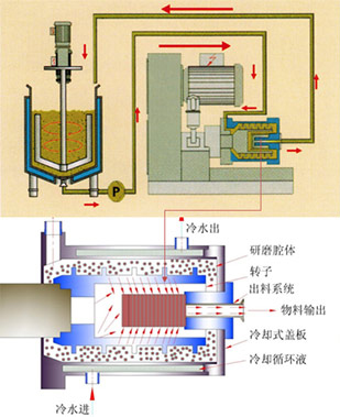 可實現(xiàn)低溫砂磨 縮短漿料在磨腔內的滯留時間,有效抑制溫度上升。通過循環(huán)冷卻水的冷卻,可實現(xiàn)低溫砂磨。 |